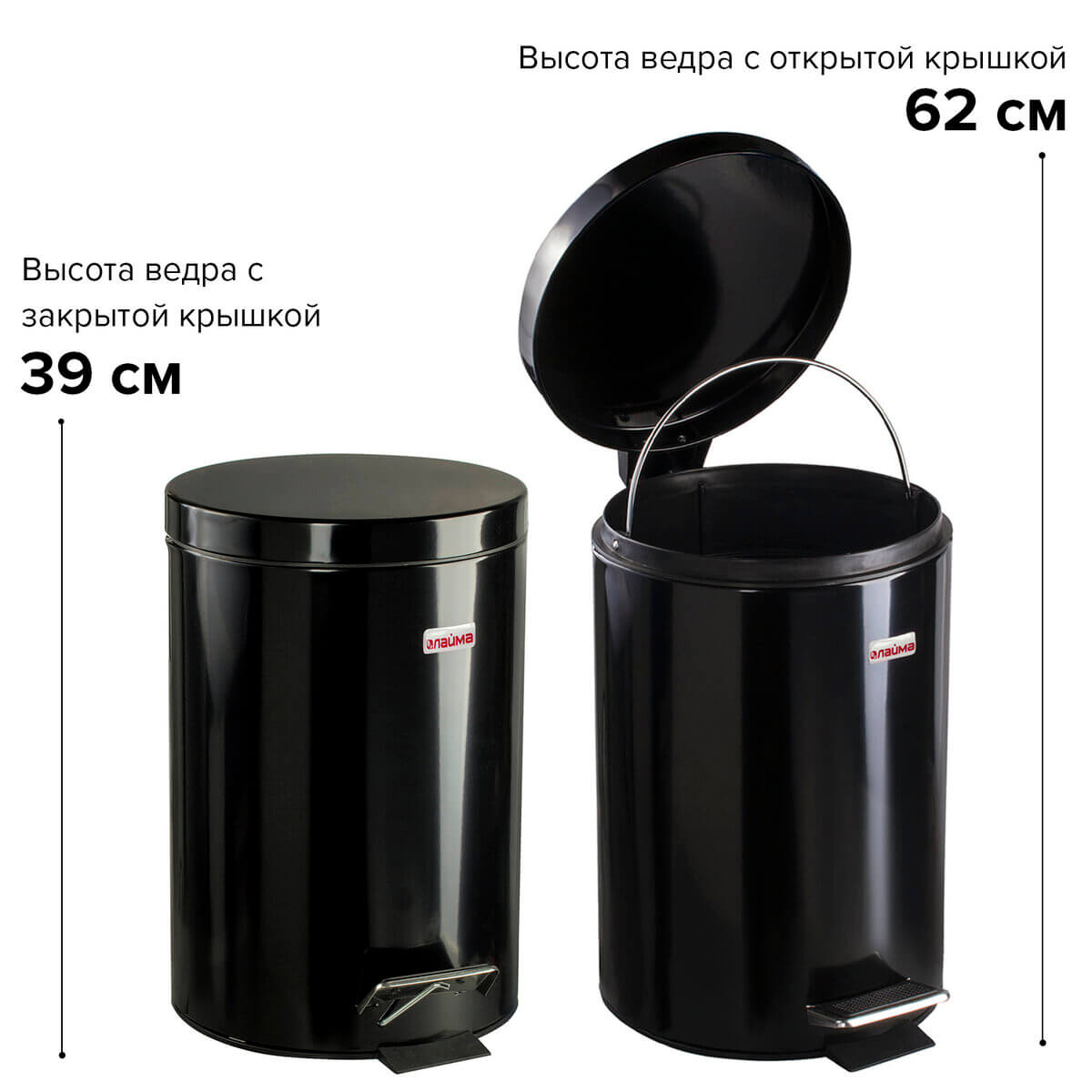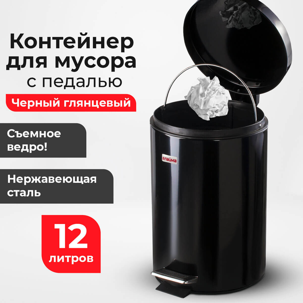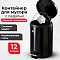 Ведро-контейнер для мусора (урна) с педалью LAIMA Classic, 12 л, черное, глянцевое, металл, со съемным внутренним ведром