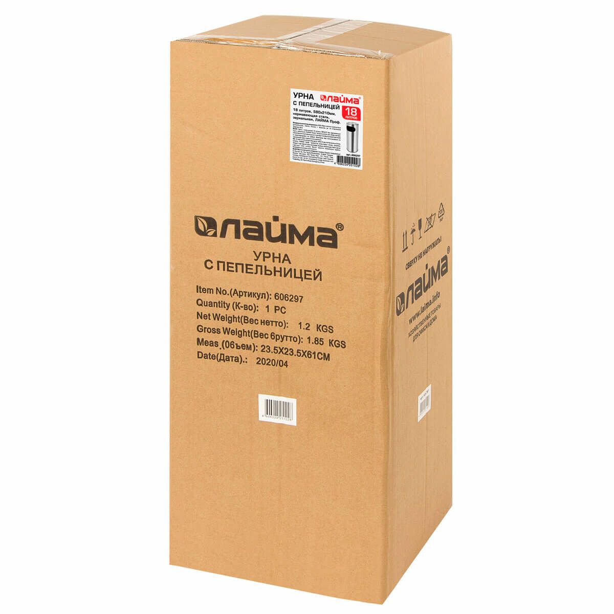 Урна с пепельницей 18 литров, нержавеющая сталь, зеркальная, LAIMA PROFESSIONAL в Томилино